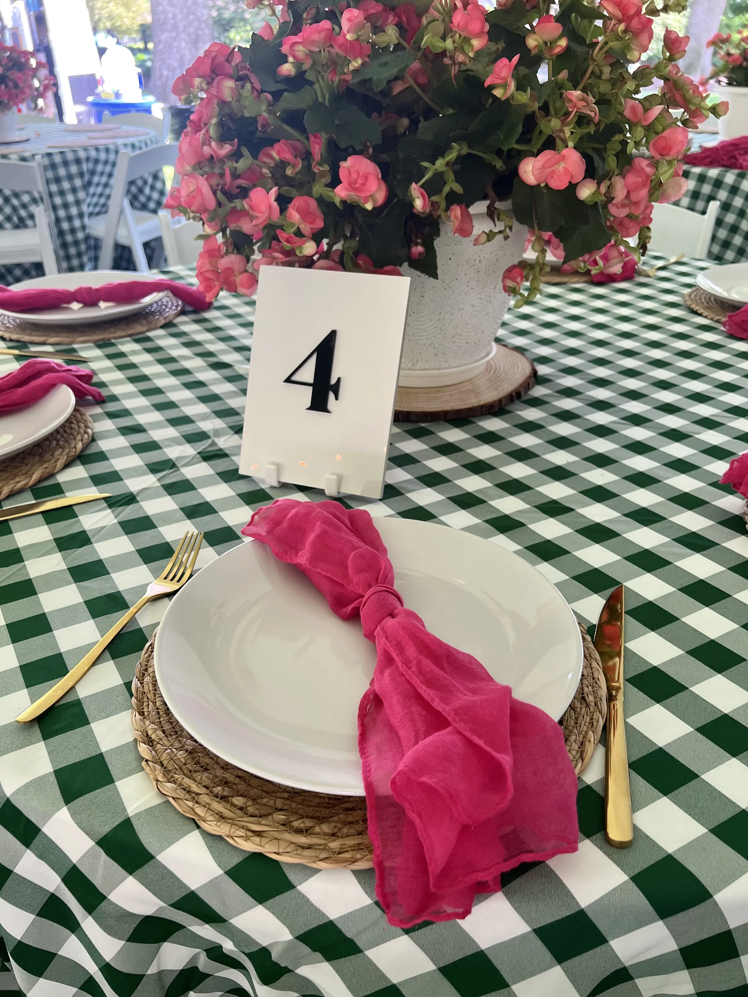 Fuchsia Cheesecloth Napkins + Wood Slab Centerpieces